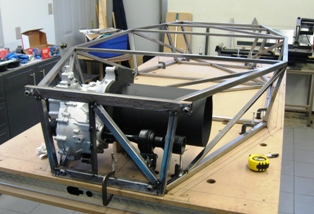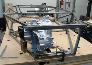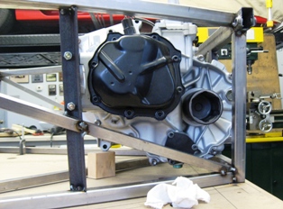 Feb 11, 2010 - The verticals and some of the cross bracing are tacked in place. The transmission is shimmed into position to make sure the rear cross bracing doesn't interfere. |