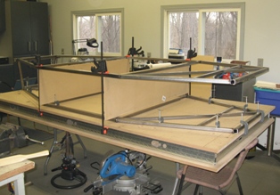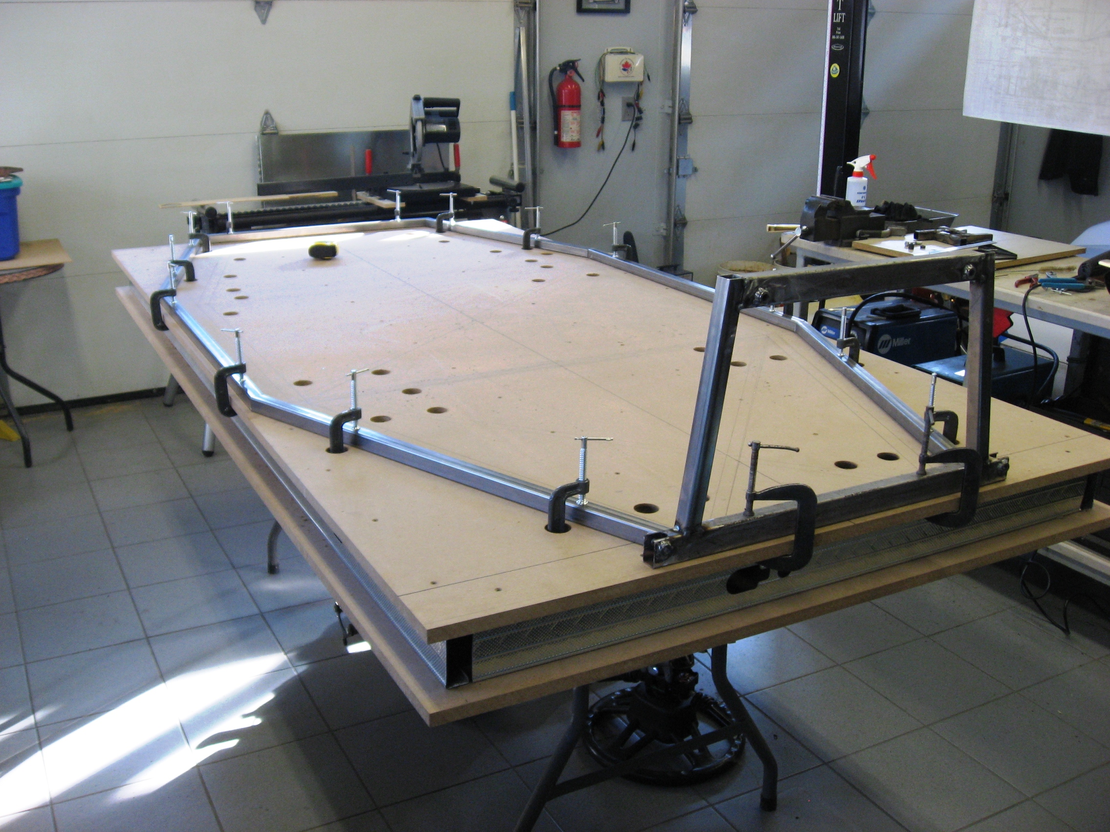 Feb 7, 2010 - Started on the fame. I'm building the upper section first. Once it is tacked together, I'll take it off the table, build the lower section and then lay the upper section on top. |