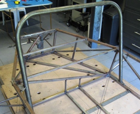 The roll bar is 1-1/2" diameter, 1/8"wall tubing. It's heavy but I wanted to stay within SCCA specs in case the car ever goes to the track. |