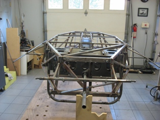 Sept 2, 2010 - Welding the roll bar and tunnel. That rotisserie sure has come in handy. |