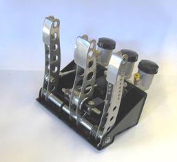 Got the pedals back from powder coating. I'm really pleased with how they turned out. One master cylinder is for the clutch and the other two are for the front and rear brakes. There is a balance bar in the brake pedal that allows adjustment for front/rear bias. |