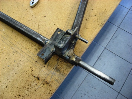 Steering kingpin tacked up, ready for welding